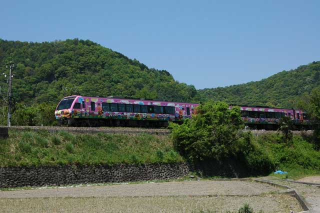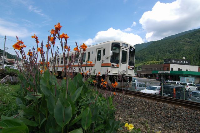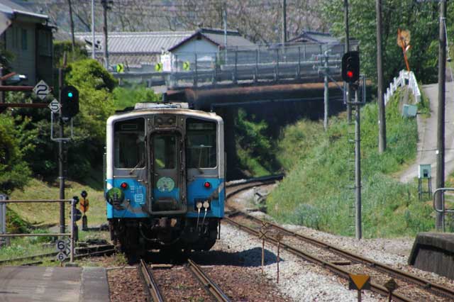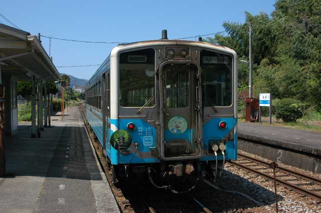 続いて2000系気動車。特急うずしおです。1時間あまりこの駅にいましたが、その間人の姿がいっさいありませんでした。ここも秘境駅と言えそうですね。駅の周りを散策してみましたが。。。クマンバチがいっぱい寄ってきたので退散しました。あなたたちのえさ場を荒らしにきたんじゃありませんって(汗)。実は昔から蜂はとっても苦手だったりします。(^_^;