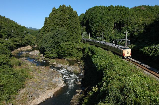 今度は渓谷と川沿いの特急を。特急北近畿11号です。北近畿は、比較的国鉄色が多いですね。