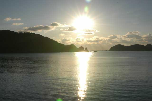 太陽が昇ると、海はあっという間に青い色に染まっていきます。