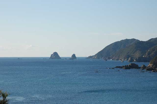 もう一度二木島に戻ることにしました。途中景色のよさそうなところで、美しいリアス式海岸の熊野灘を撮影です。
