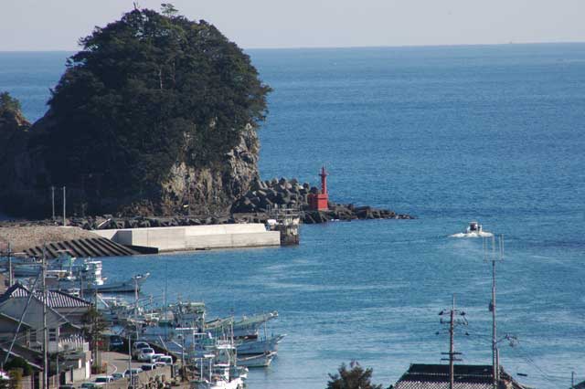 漁港の裏手に、城山公園という展望台があります。早速登ってみました。近くには明治維新のおり、この近くで薩摩藩と江戸幕府の艦隊戦があったという案内がありました。ここから見下ろす風景も格別ですね。