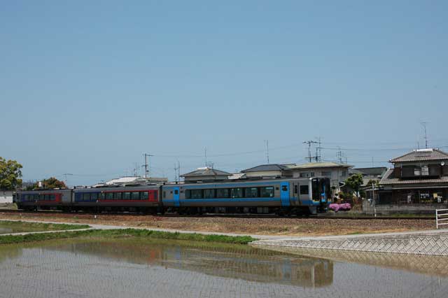 2000系特急うずしおです。水鏡に映った姿が美しいですね。