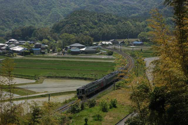 ここから、里を駆け抜ける2000系うずしおを撮影です。こういう景色はいいですね。日本の原風景です。